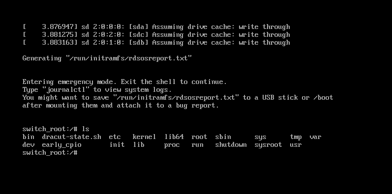 在红帽企业linux8中,可以使从initramfs运行的脚本在某些点暂停,提供root shell,然后再该shell存在的情况下继续。这主要是为了进行调试,但也可以使用该方式来重置丢失的root密码。